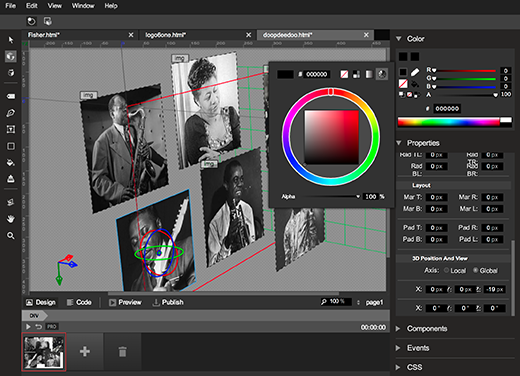 Google Web Designer es una aplicación web avanzada creada con HTML5 que le permite diseñar y compilar anuncios HTML5 y otros tipos de contenido web mediante una interfaz visual y de código integrada. Con la vista de diseño de Google Web Designer puede crear contenido con herramientas de dibujo, texto y objetos en 3D, y puede, además, animar objetos en una cronología. Una vez que haya terminado de crear su contenido, Google Web Designer genera archivos HTML5, CSS3 y JavaScript limpios y legibles.